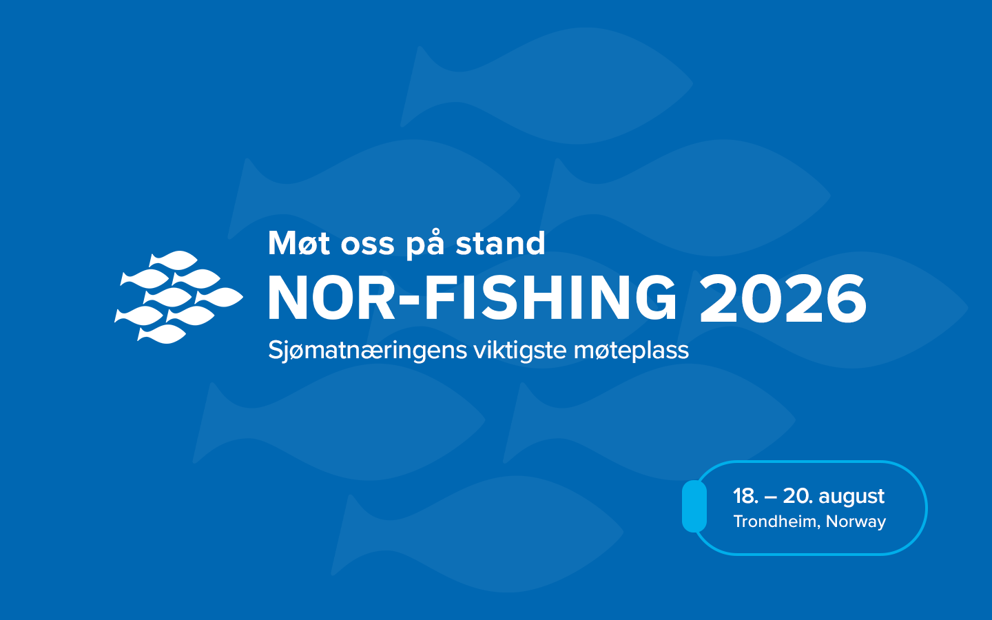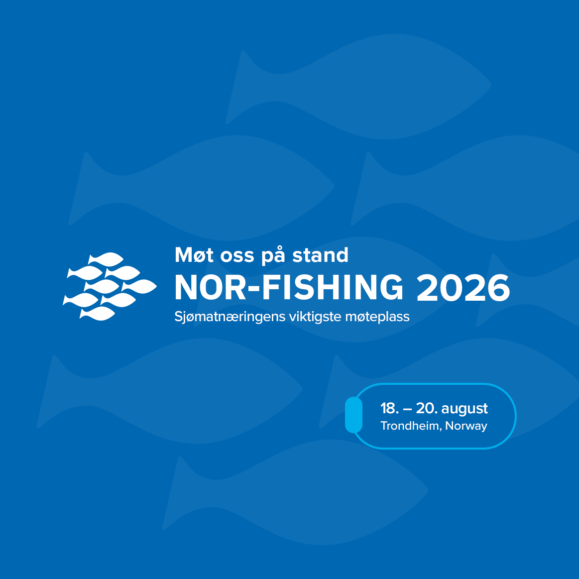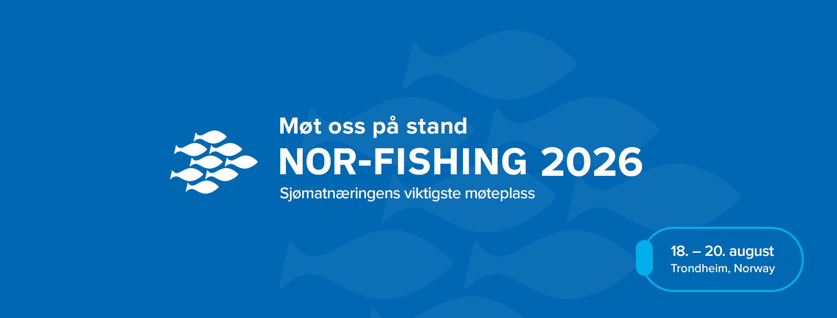 Du kan benytte bildemateriellet på denne siden til å informere kunder og samarbeidspartnere om at bedriften din er utstiller på Nor-Fishing 2026.